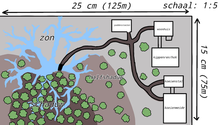 Ik begon leerjaar drie met de opdracht om een voedselbos te ontwerpen waaruit een gezin van twee ouders en twee kinderen al hun eten zou kunnen halen. Ik deed dit samen met Moira, Jasmijn en Otis.